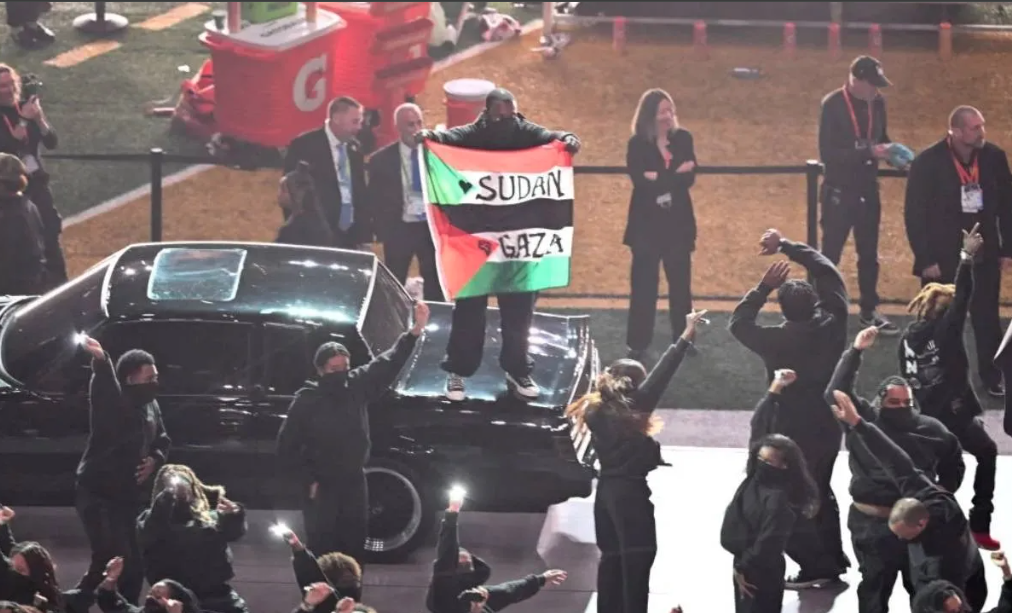 Uno de los cuatrocientos bailarines de la puesta en escena se reveló ondeando las banderas de Palestina y Sudán durante el espectáculo, fue sacado inmediatamente por los cuerpos de seguridad. En días anteriores el presidente Donald Trump hizo pública la intención de adueñarse de la franja de Gaza para evitar conflictos con Israel. El espectáculo fue notable por su enfoque a la cultura hip hop, la crítica a la política y por ser la primera vez que un rapero encabeza el evento en solitario.