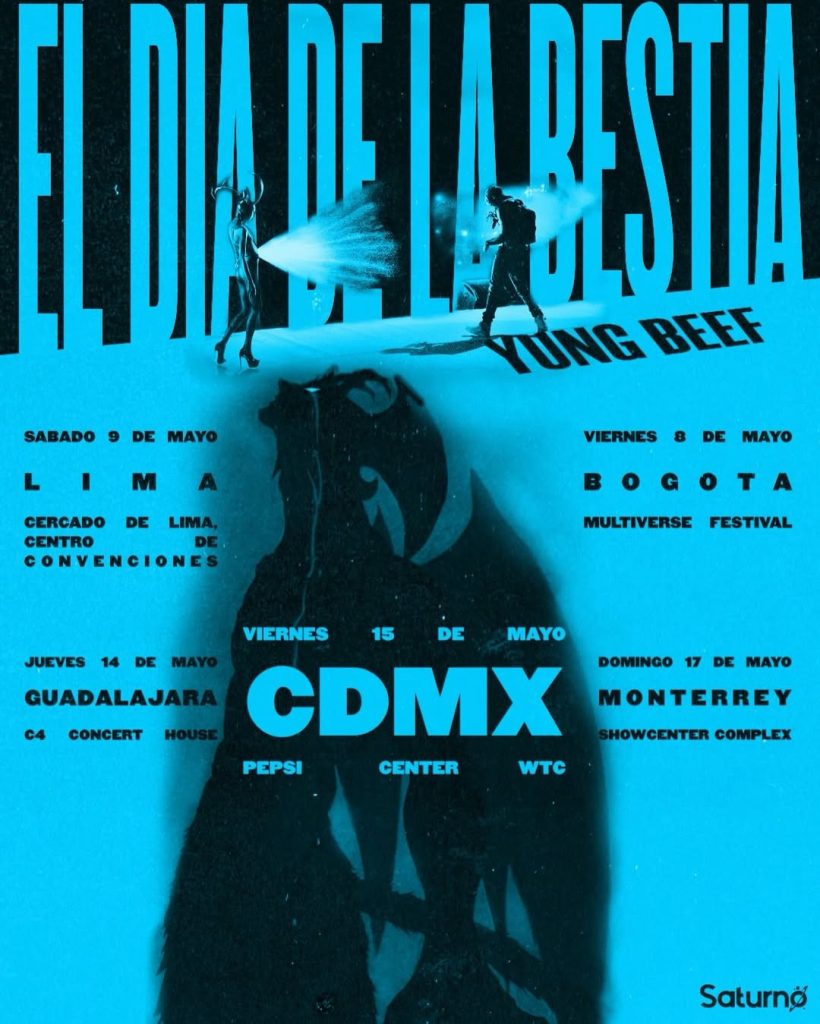 El 15 de mayo, el Pepsi Center de la CDMX va a ser el punto de reunión para ver «El Día De La Bestia», el show que Yung Beef estuvo rodando por toda España en 2025 y que llega como su propuesta más ambiciosa hasta ahora. Es una fecha grande porque no solo es concierto, es la versión en vivo de su universo, con esa mezcla de trap, rap y reggaetón.